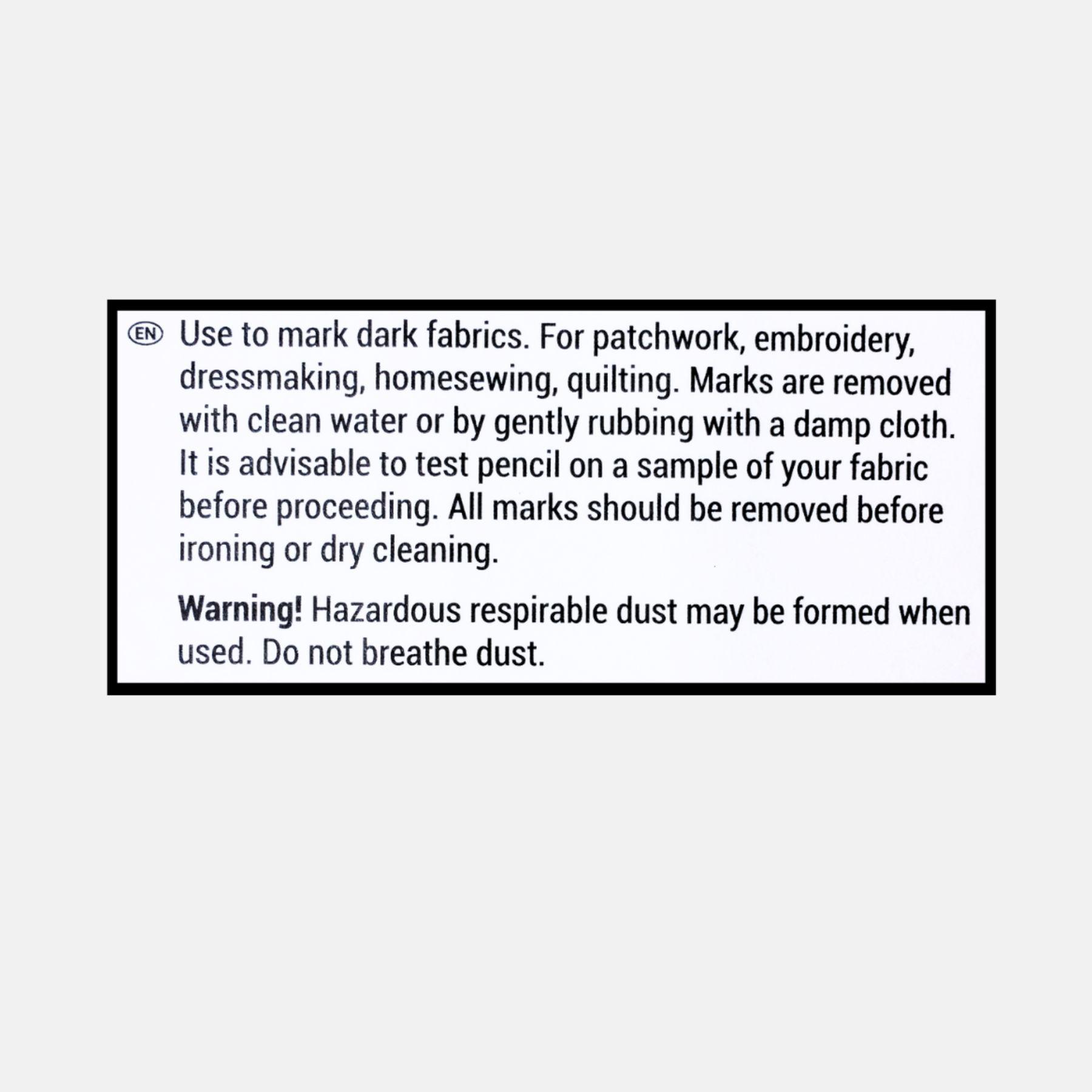 Den hvide blyant er god til at tegne på mørke stoffer. Den kan især bruges til at optegne gitter til sashikobroderi på mørkt stof, men også som markeringspen til syning generelt.